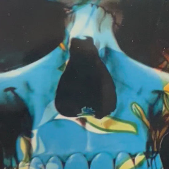 Beautiful blue cork backed skull placemat or wall hanging. Superb quality and a must for skull lovers!